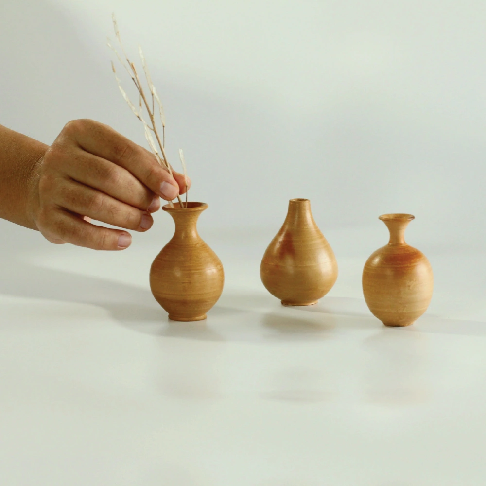 Handmade clay vases with earthy tones and minimal form. Crafted by artisans in Pondicherry, inspired by Indian everyday forms.