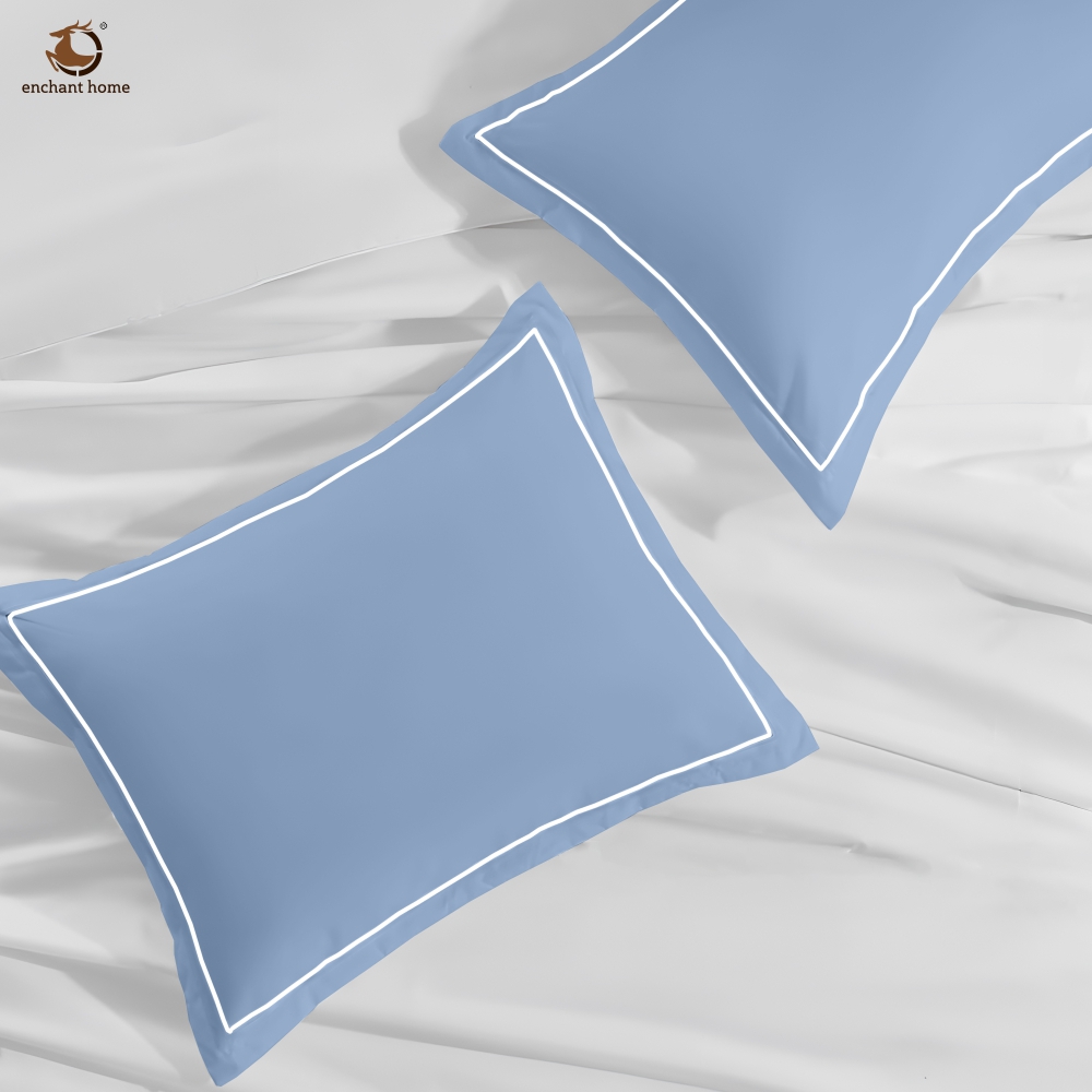 Blue 300 TC Pure Cotton Solid Greek Embroidered Pillow Cover Set