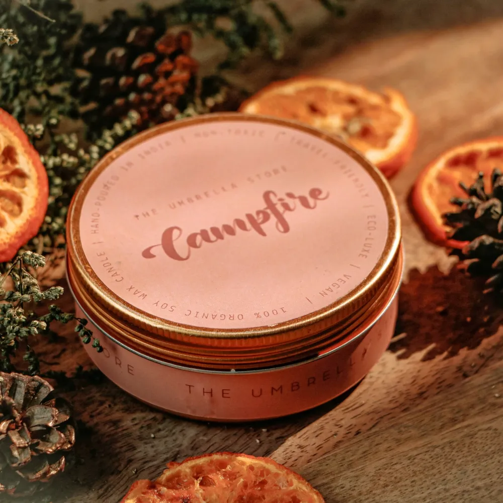 Bring the rustic charm of a cozy campfire into your home with our Campfire scented candle. This exquisite candle features a harmonious blend of earthy scents, including zesty orange, fragrant pine, and rich cedarwood, that transport you to the great outdoors. Crafted from the finest natural ingredients, our Campfire candle offers a long-lasting burn that fills your home with the warm, inviting aroma of a campfire. The subtle notes of orange, pine, and cedarwood are expertly balanced to create an authentic and comforting fragrance that will help you relax and unwind. Perfect for creating a cozy ambiance during chilly evenings or for reliving fond memories of camping trips, our Campfire scented candle is an excellent addition to any home. Its unique aroma will evoke feelings of warmth, comfort, and togetherness, making it an ideal gift for loved ones.