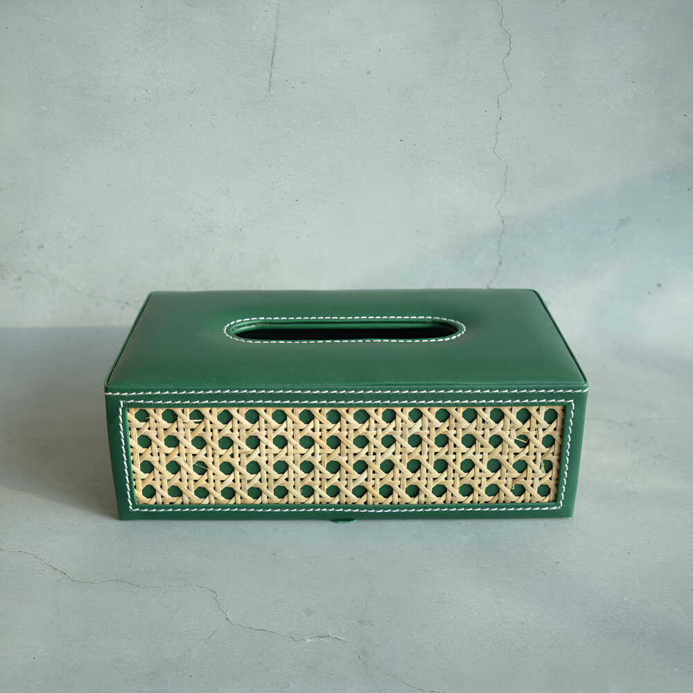 Emerald Green PU Leather Rattan Tissue Box Rectangle