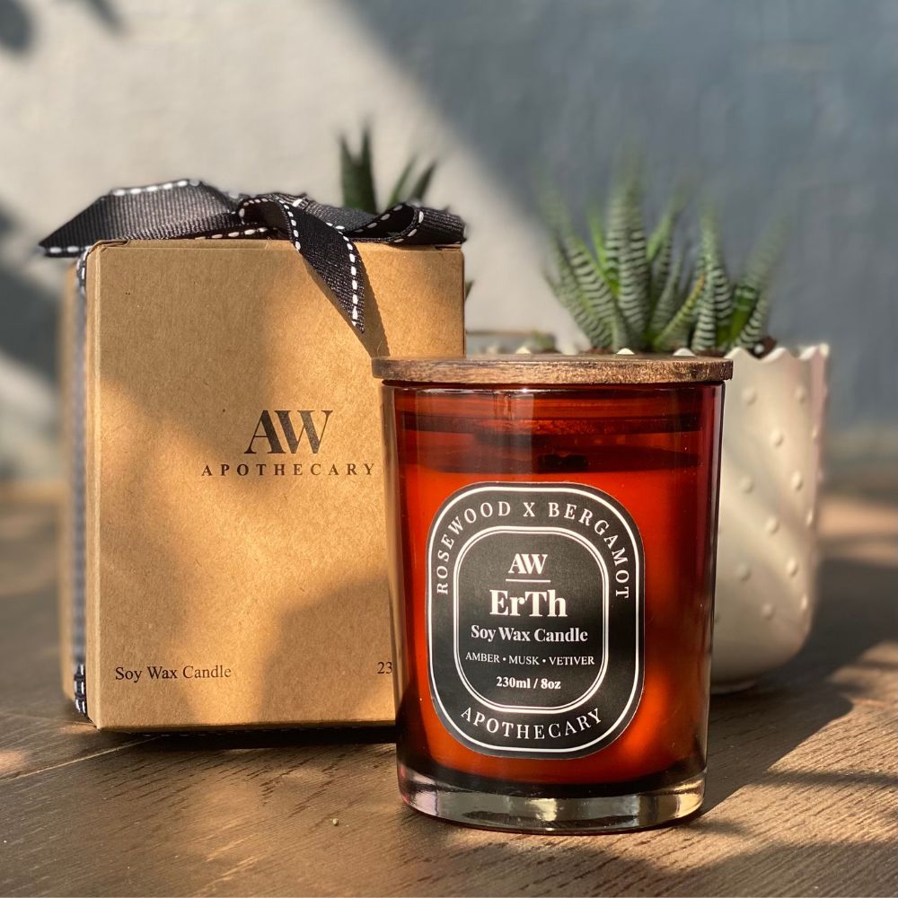 ErTH Soy Wax Candle is all musk and mood of leaves of flame, of high altitude living exposed to the forces of nature, the masculinity of Amber and Vetiver – raw and of the earth. Rosewood and Bergamot push, pull and polarise, and that is ErTH’s very purpose.