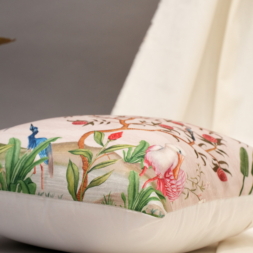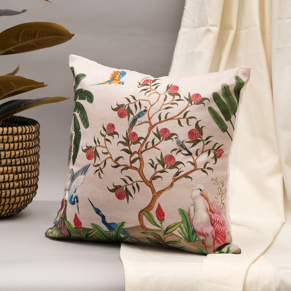 Celebrate the joy of Diwali with the Garden Symphony Cushion. This elegant cushion features a soft, neutral base adorned with a lively print of blooming flowers, lush leaves, and vibrant birds, creating a scene reminiscent of a serene garden in full bloom. The rich details and vivid colors make it a striking addition to any festive decor, bringing a touch of nature’s beauty into your living space. Made from premium quality fabric, this cushion offers both comfort and style, making it perfect for festive gatherings or as a thoughtful gift for loved ones. Illuminate your home this Diwali with the charm and grace of the Garden Symphony Cushion. Please note: The color of the product may vary depending on the display of your screen.