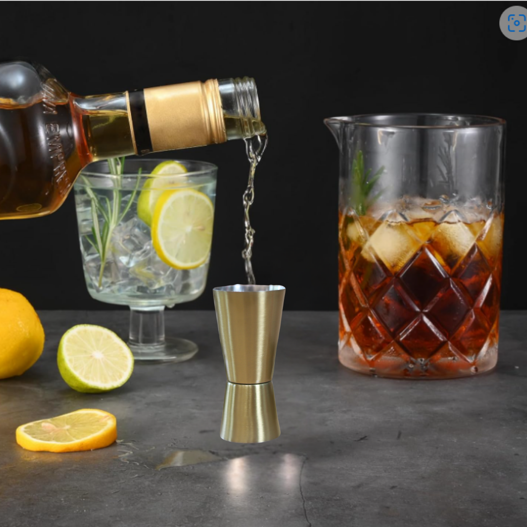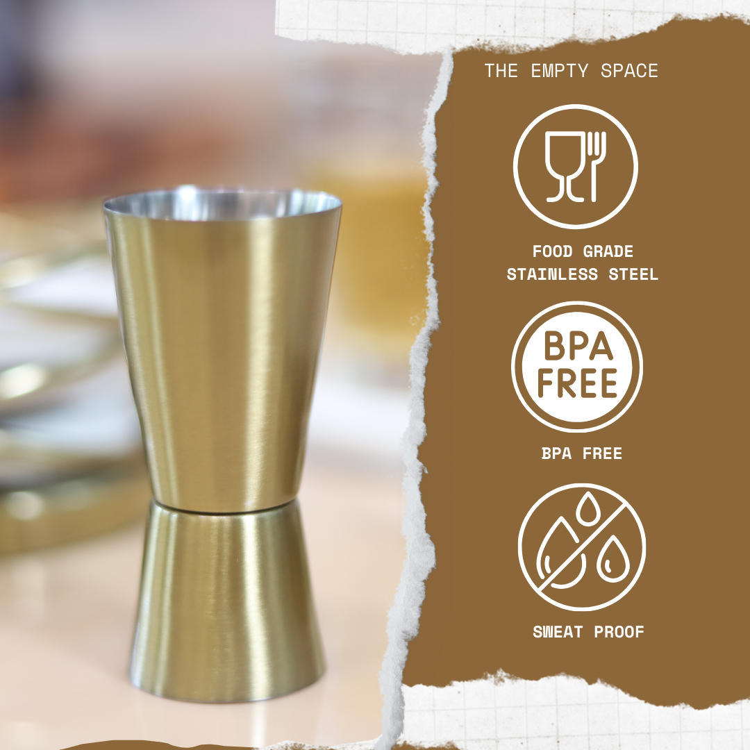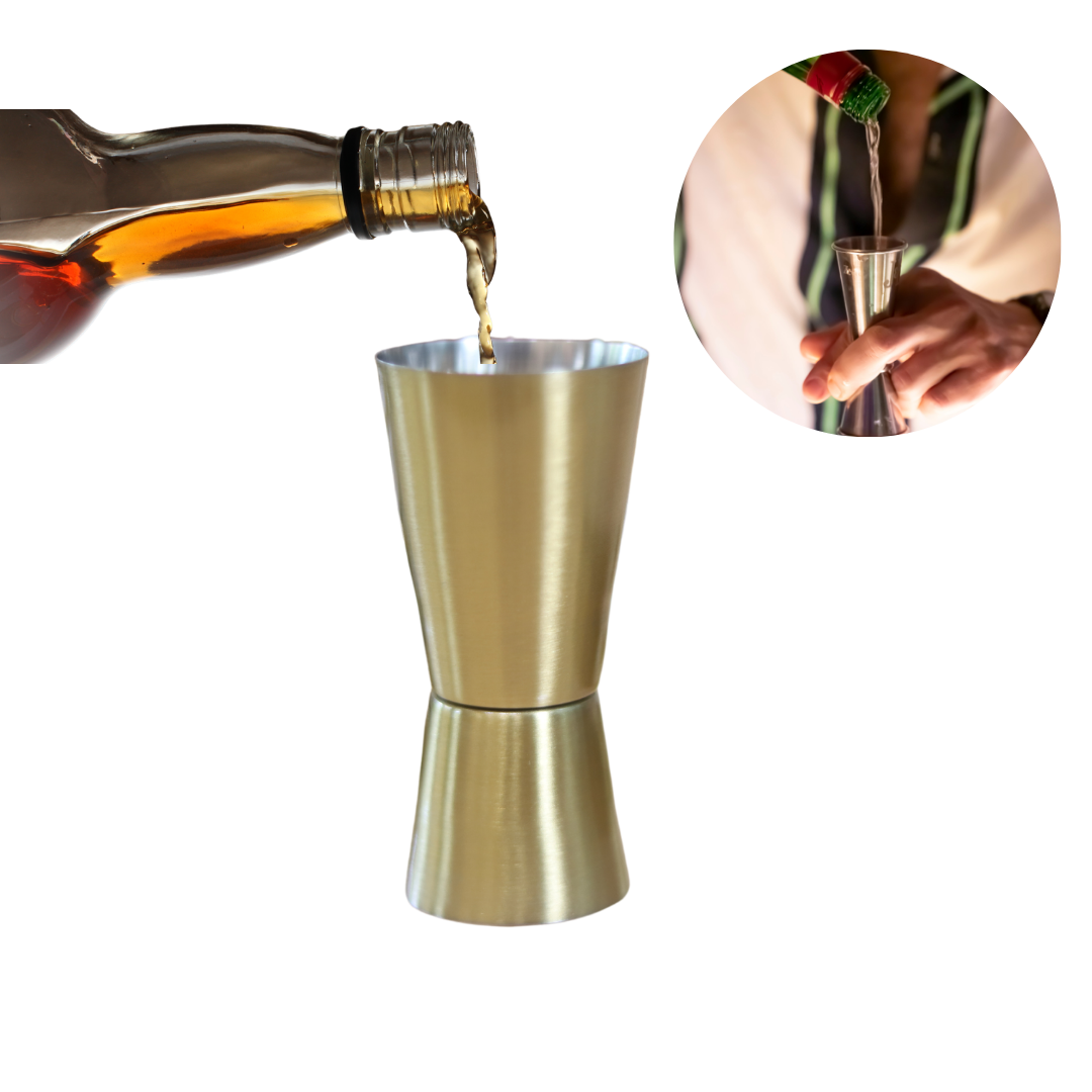 Measure with precision and style. This double-sided peg measurer features 25ml and 50ml capacities, crafted from durable stainless steel with a luxe gold finish. Perfect for home bartenders and professionals alike, it ensures accurate pours every time.