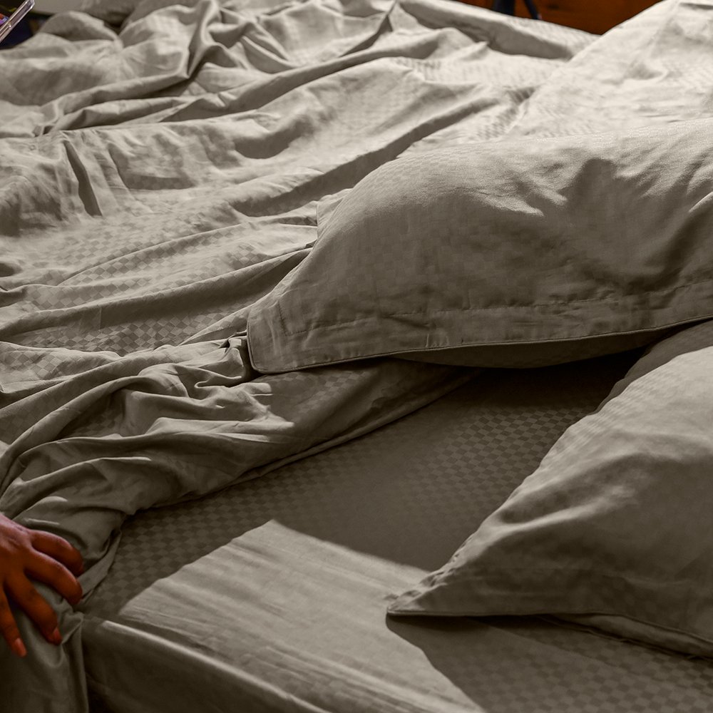 Our bedsheets are made from 100% premium cotton with a soft, breathable weave that’s perfect for hot and humid nights. Designed to wick away moisture and stay cool, they offer unmatched comfort. The subtle jacquard checkered pattern adds a refined texture and visual interest, bringing quiet elegance to your bedroom. No pilling, no colour bleed—just pure, lasting softness that only gets better with every wash. Includes: 1x Flat Sheet, 2x Pillow Covers