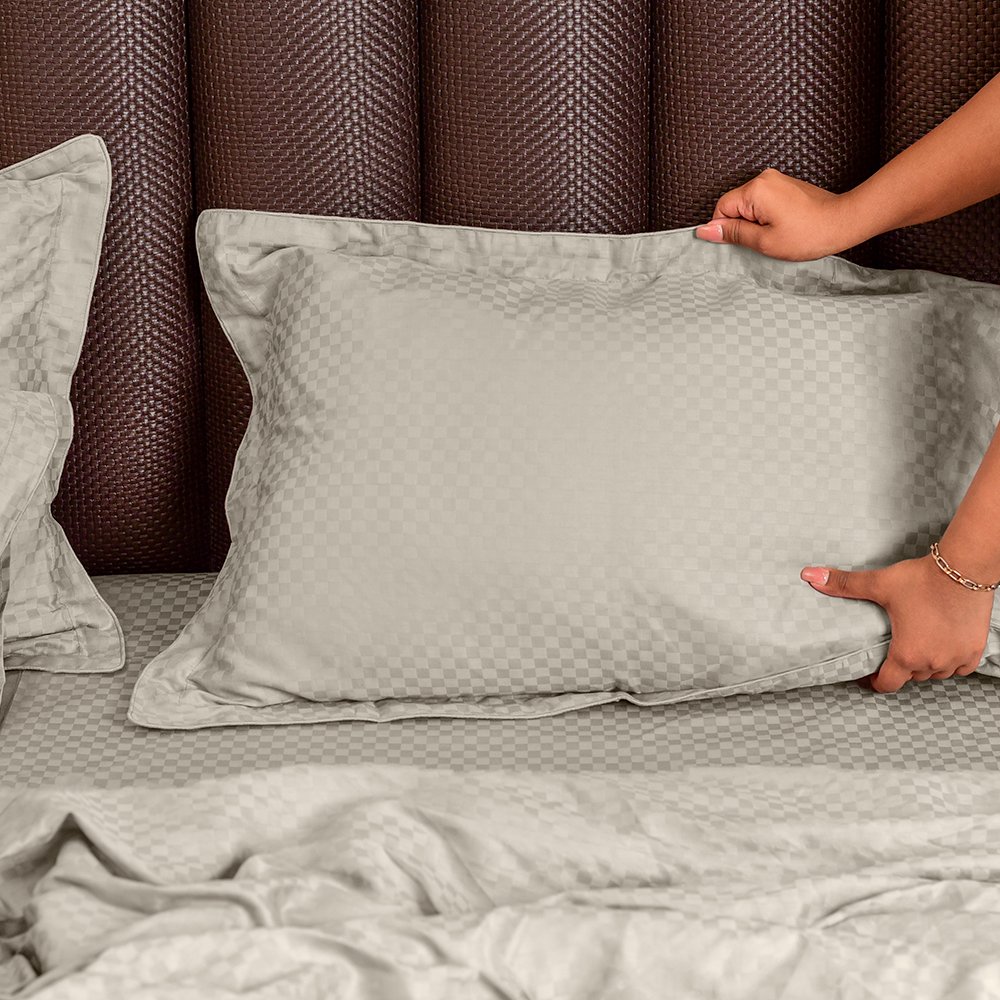 Greige Grid Jacquard King Flat Sheet Set | 2 Pillow Covers