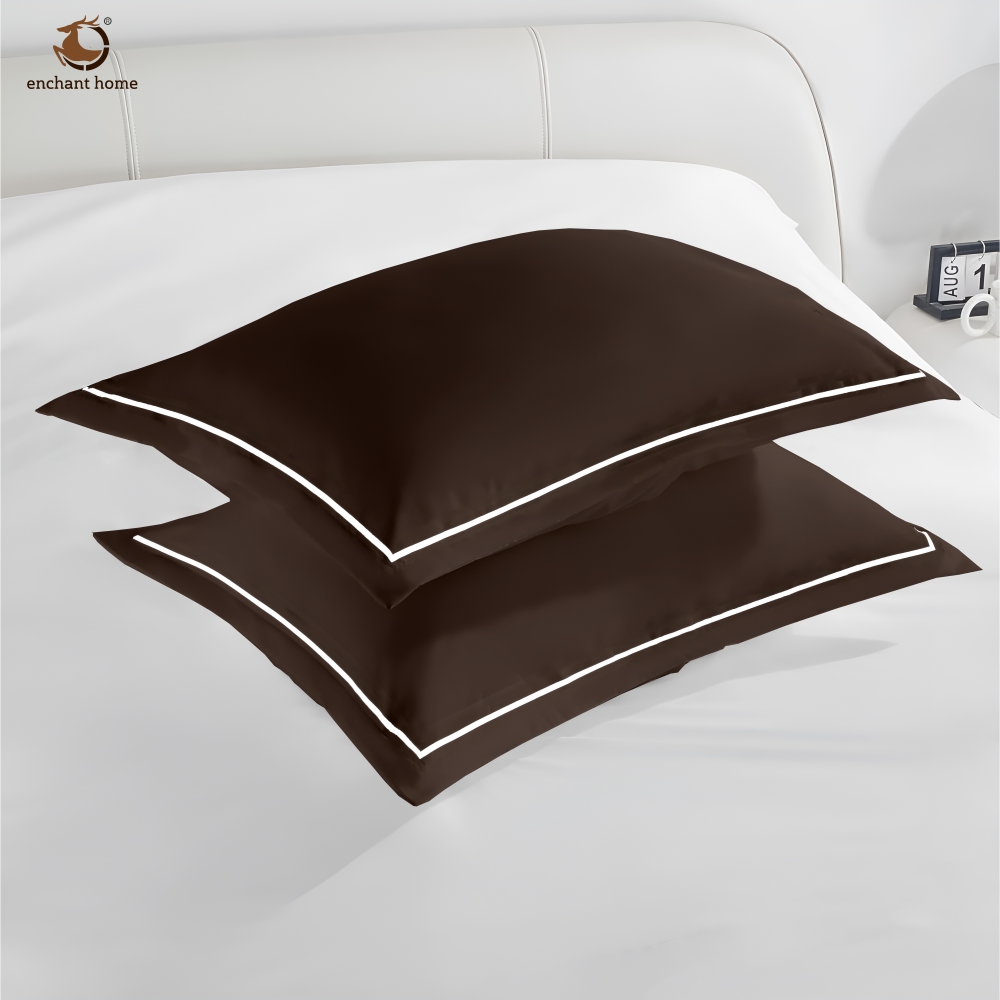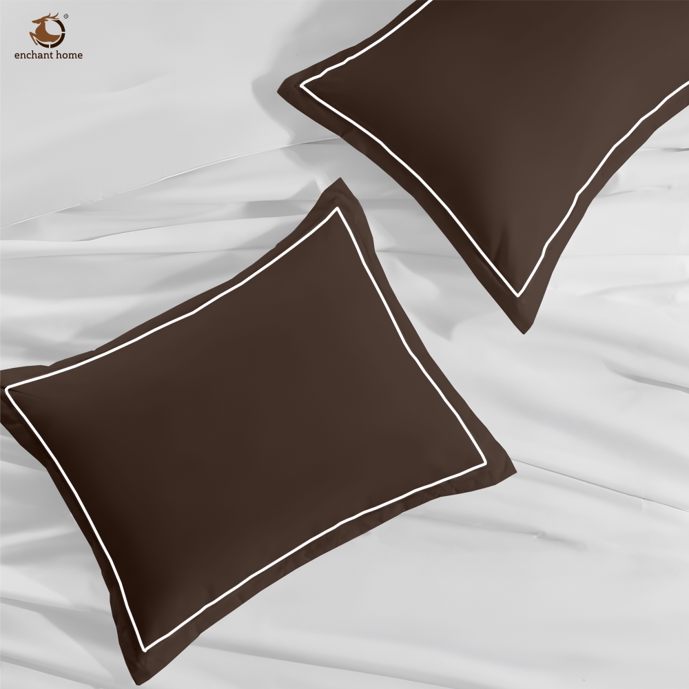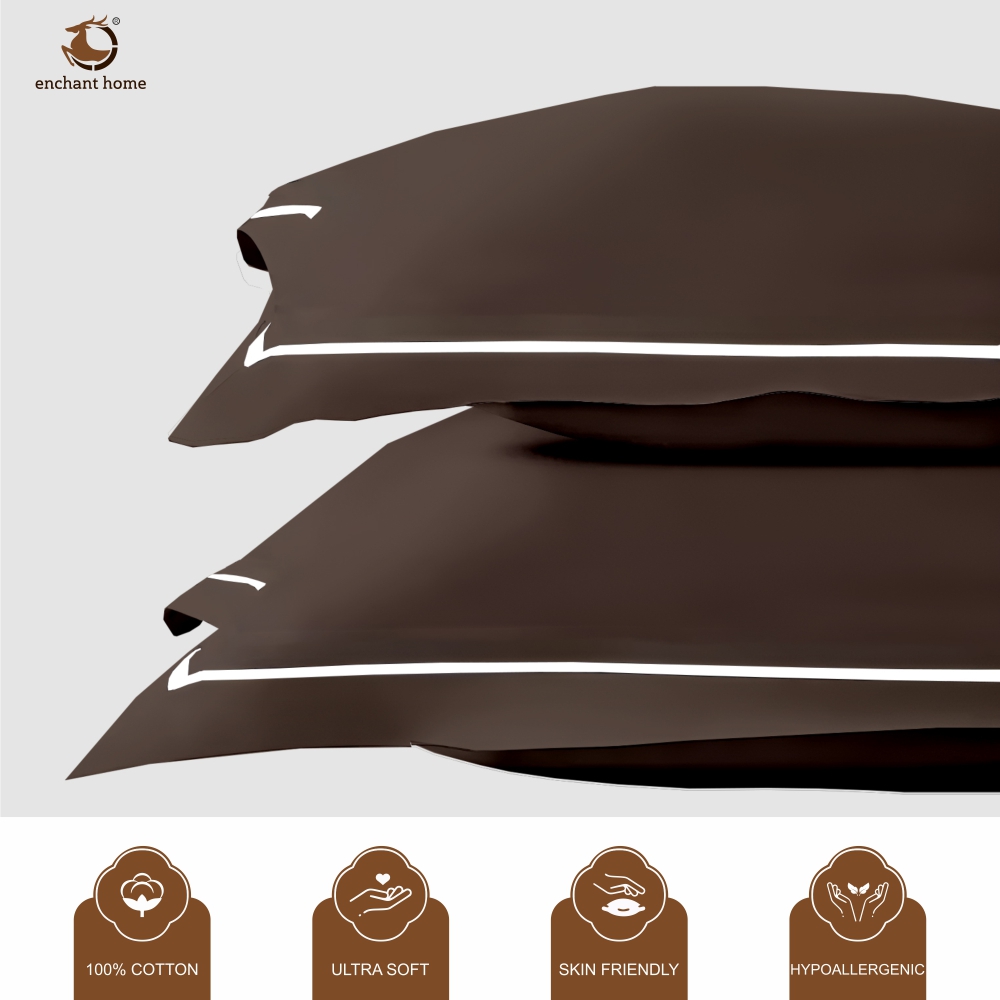 Khaki 300 TC Pure Cotton Solid Greek Embroidered Pillow Cover Set