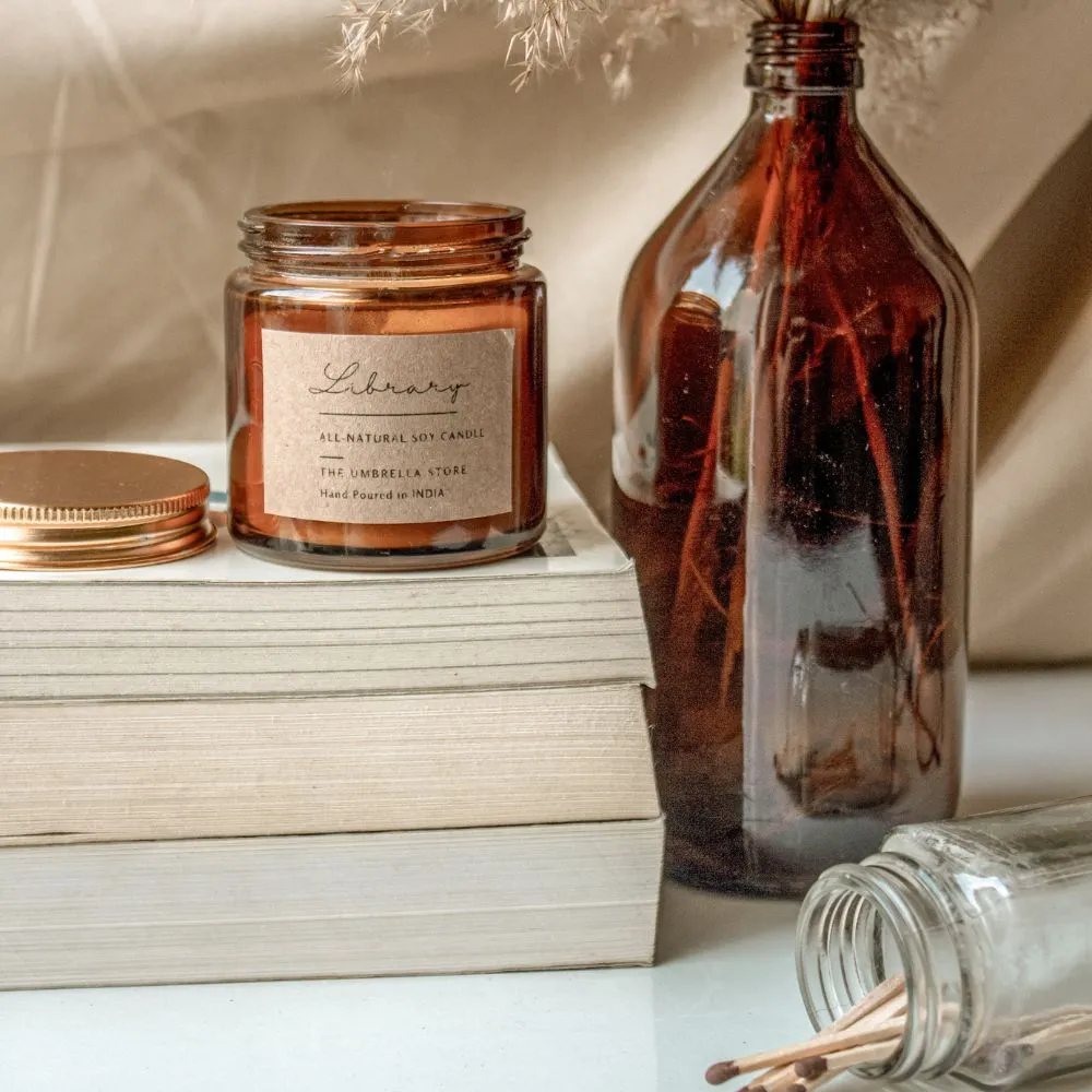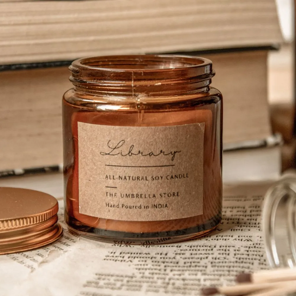 Introducing our exquisite library scented candle, expertly crafted with 100% organic soy wax and a wooden wick for a clean and eco-friendly burn. Immerse yourself in the cozy ambiance of a private library with the warm and inviting notes of sandalwood, musk, vanilla, and cedarwood. Perfect for book lovers and avid readers, this candle will transport you to a world of relaxation and tranquility. Our library scented candle is the perfect addition to your home decor and a thoughtful gift for any occasion. Indulge in the luxurious and aromatic experience of our library scented candle, and let its soothing blend of scents calm your senses and rejuvenate your mind