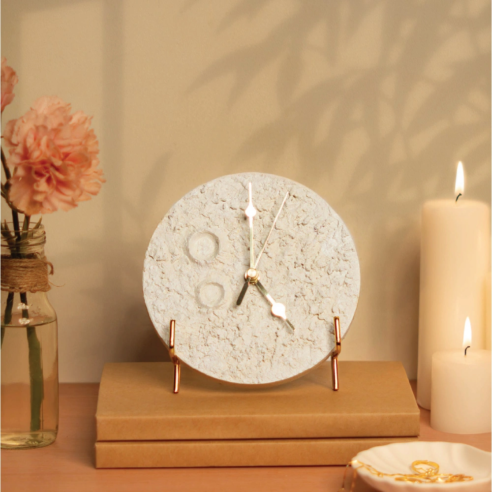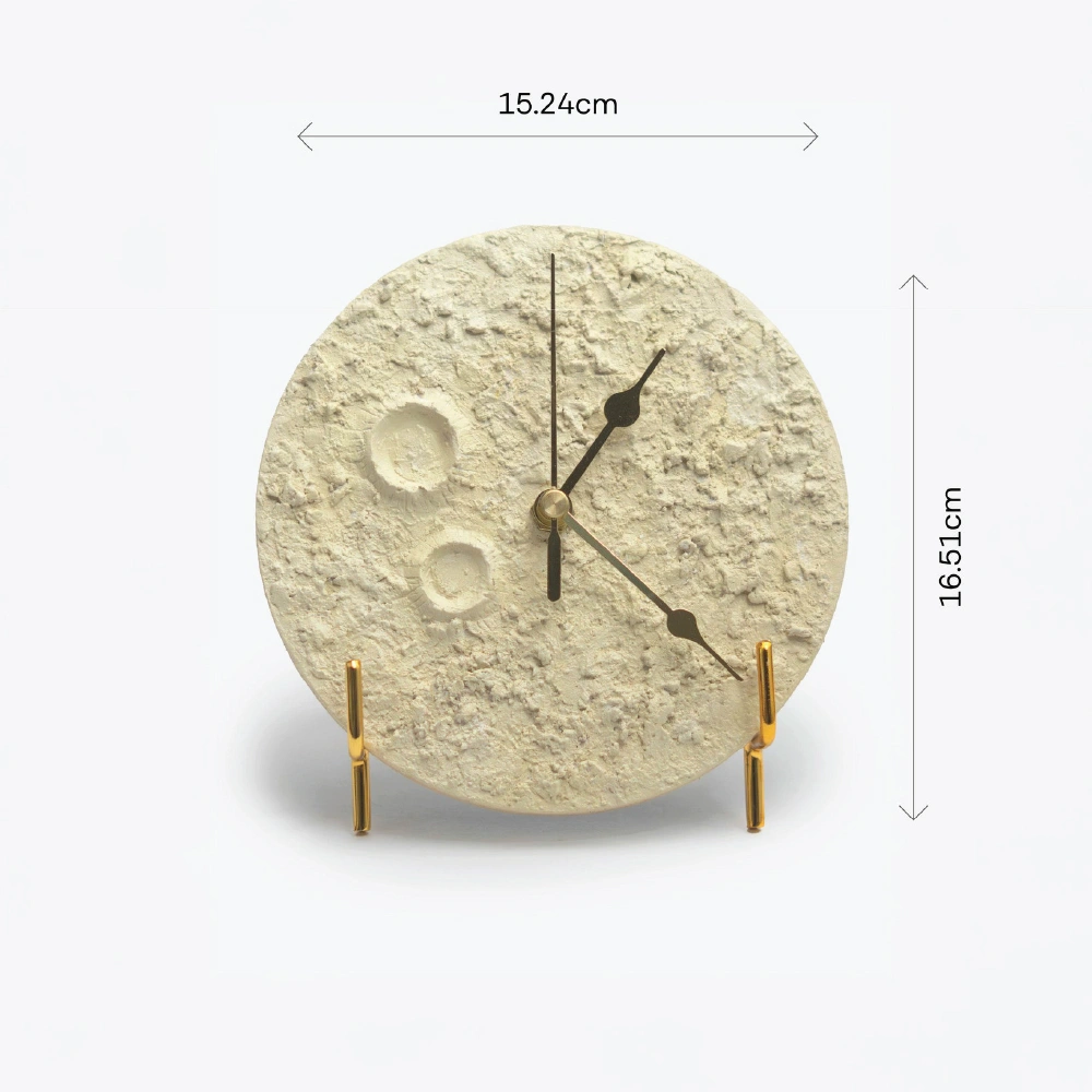 Meet your new favuorite table clock — shaped like the moon and made for moments that matter. It’s the perfect mix of function and fantasy, quietly ticking away while adding a soft glow of charm to your space. Whether it’s helping you stay on schedule or just sitting pretty on your shelf, this little lunar companion brings a touch of the night sky right to your desk, bedside, or work corner. Because time flies… but the moon always shows up. “Size- 6inch diameter