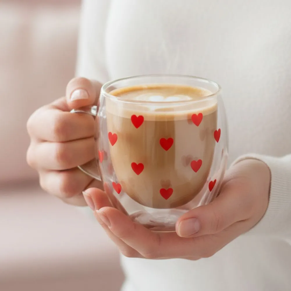 Mini Heart Double Walled Glass Mug