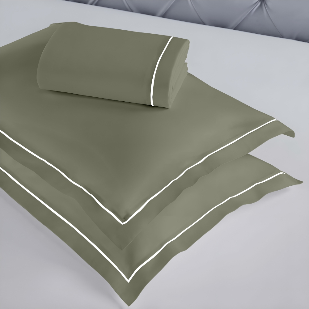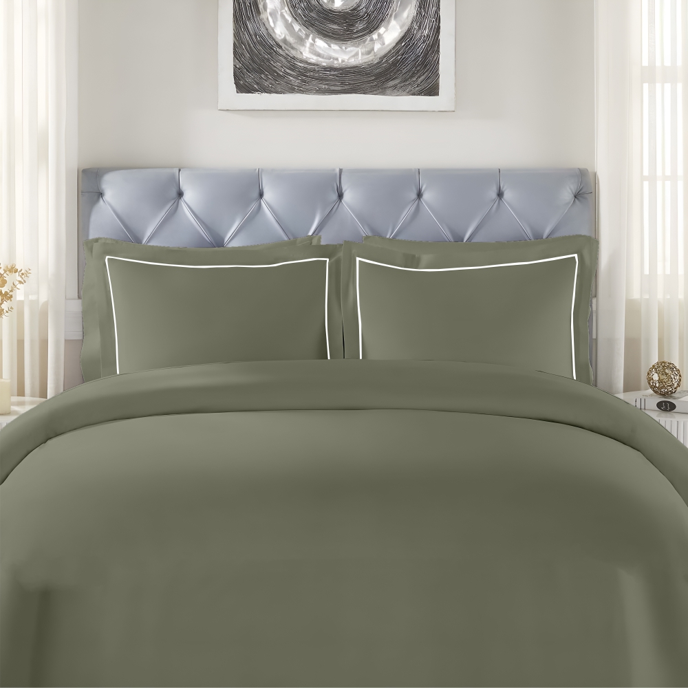 Olive Green 250 TC King Elegance Bedsheet | 2 Embroidered Pillow Covers