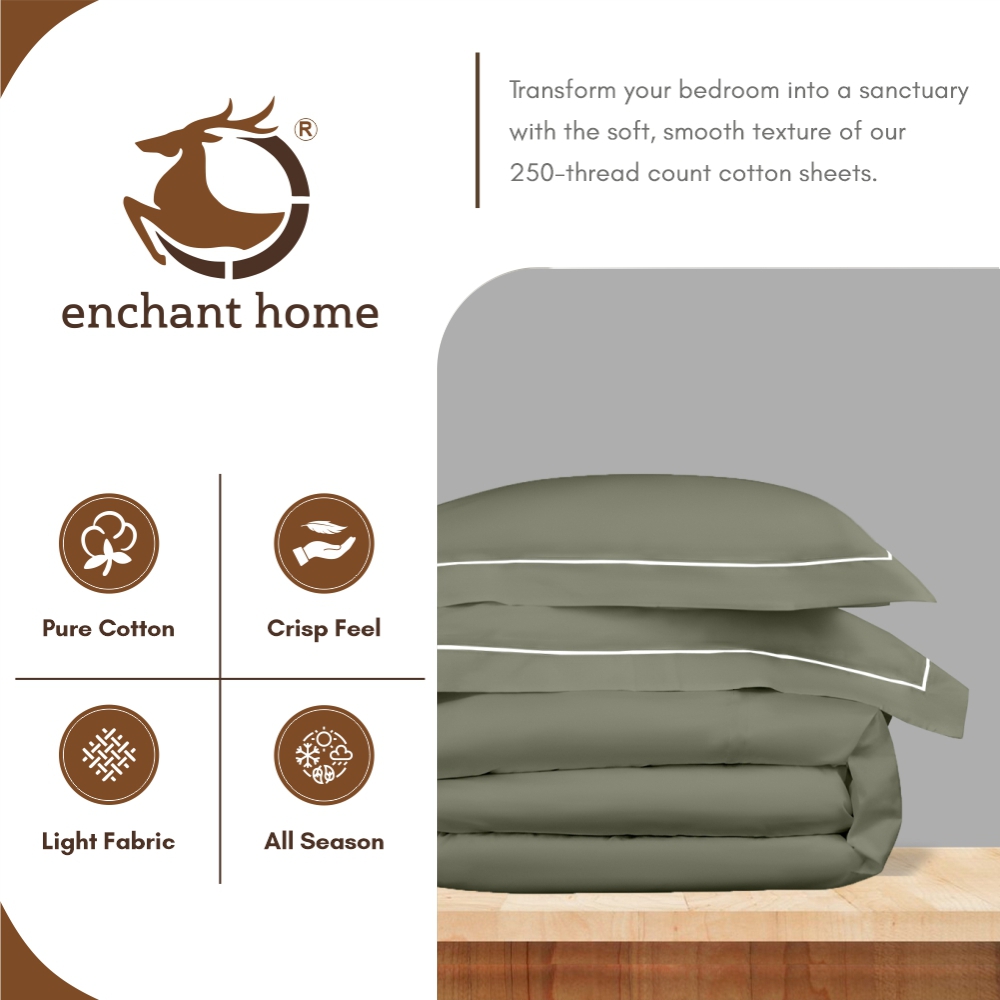 Crafted from 100% cotton with a 250 thread count, this Elegance King Bedsheet brings a touch of luxury to your bedding. Its soft, breathable fabric ensures a comfortable night’s sleep while the durable construction promises long-lasting use. Elevate your bedroom decor with the rich Olive Green color.
