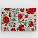 Keep your embroidered rug clean by gently vacuuming without a brush and spot cleaning with a mild detergent.
