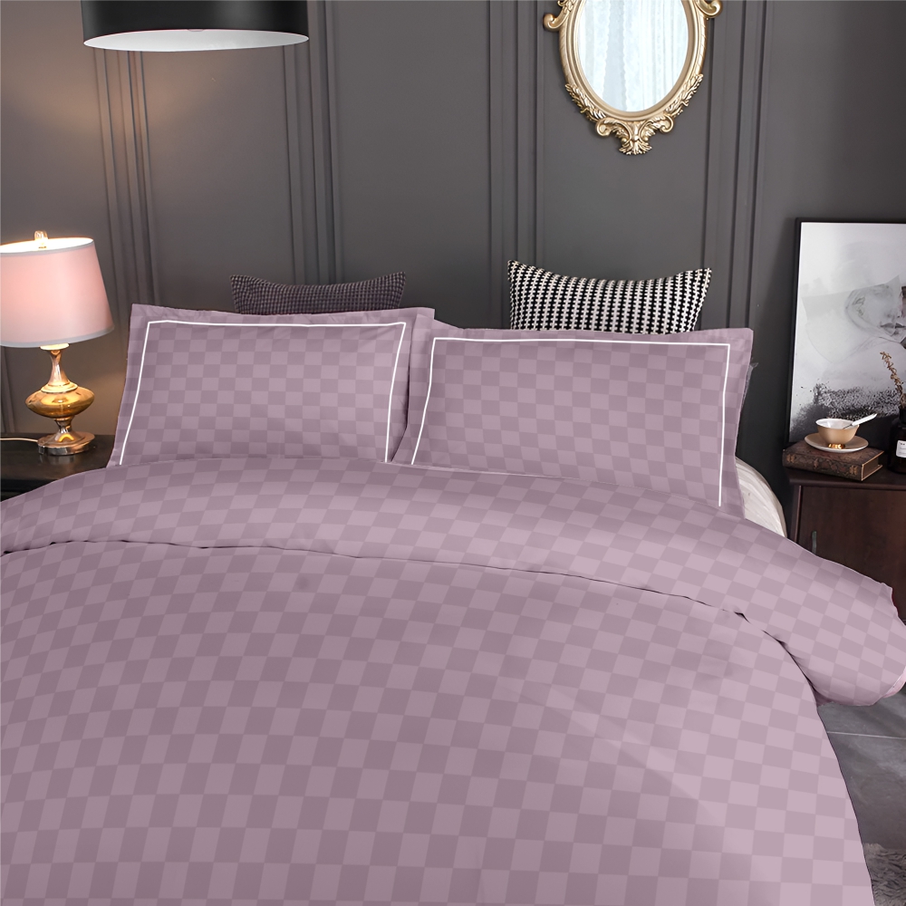 Pink 300 TC Mossaic Checks King Bedsheet | 2 Embroidered Pillow Covers