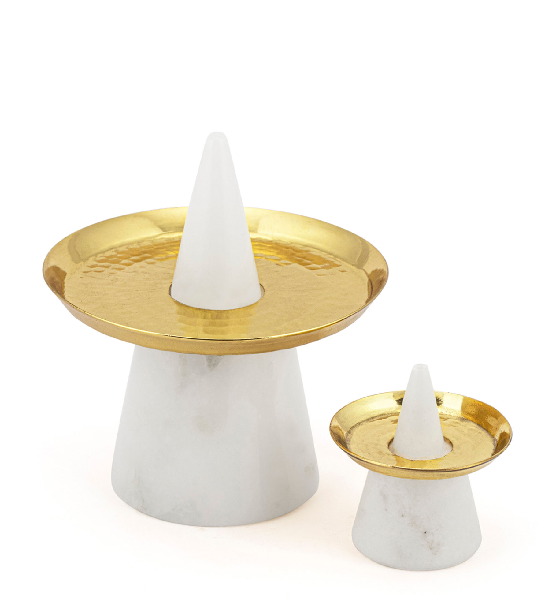 Pyramid incense stick is inspired from the ancient Egyptian pyramid structures. It is provided with a circular disc, which is hand beaten, on which the ashes of the incense stick will fall. This circular disc is the key element of the design, keeping in mind both functionality and aesthetics. The combination of white marble and brass make it a classic piece in itself. It is available in two different sizes.