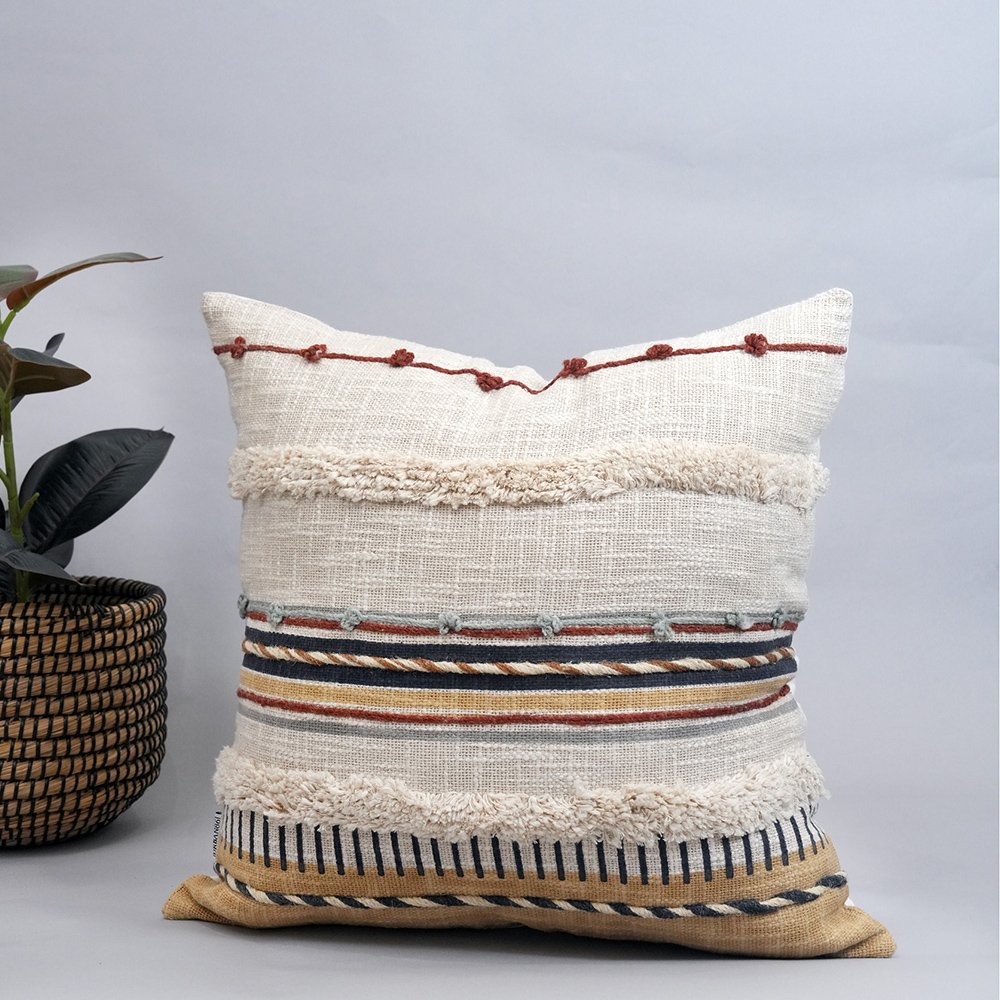Enhance your living space with our rustic stripes Cushion cover , a perfect blend of clock printing and embroidery that brings natural textures and artisan craftsmanship to the forefront. The bold yet earthy tones accented with embroidered patterns make this cushion a statement for any room. The soft textures and rich detailing offer not just comfort but a timeless handcrafted look that will elevate you home decor. Please note: The color of the product may vary depending on the display of your screen.