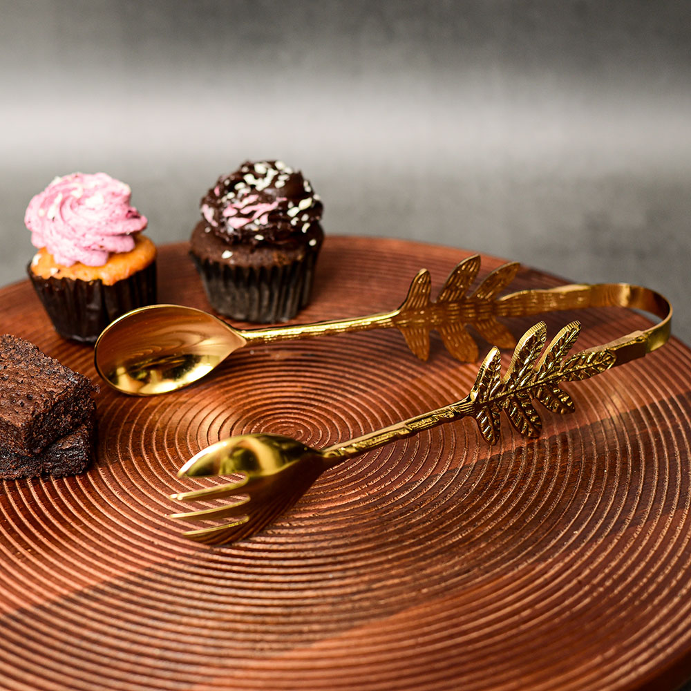 Serve in style with our Serai Brass Maple Tongs. Featuring intricate carving details, these tongs combine beauty and functionality. Perfect as ice tongs, or for serving pastries or salad. The simplicity yet uniqueness adds a touch of charm to any gathering. The brass construction ensures durability, while the fork and spoon design make serving easy and convenient. Whether hosting a special event or enjoying a casual get-together, these tongs will be a timeless addition to your table