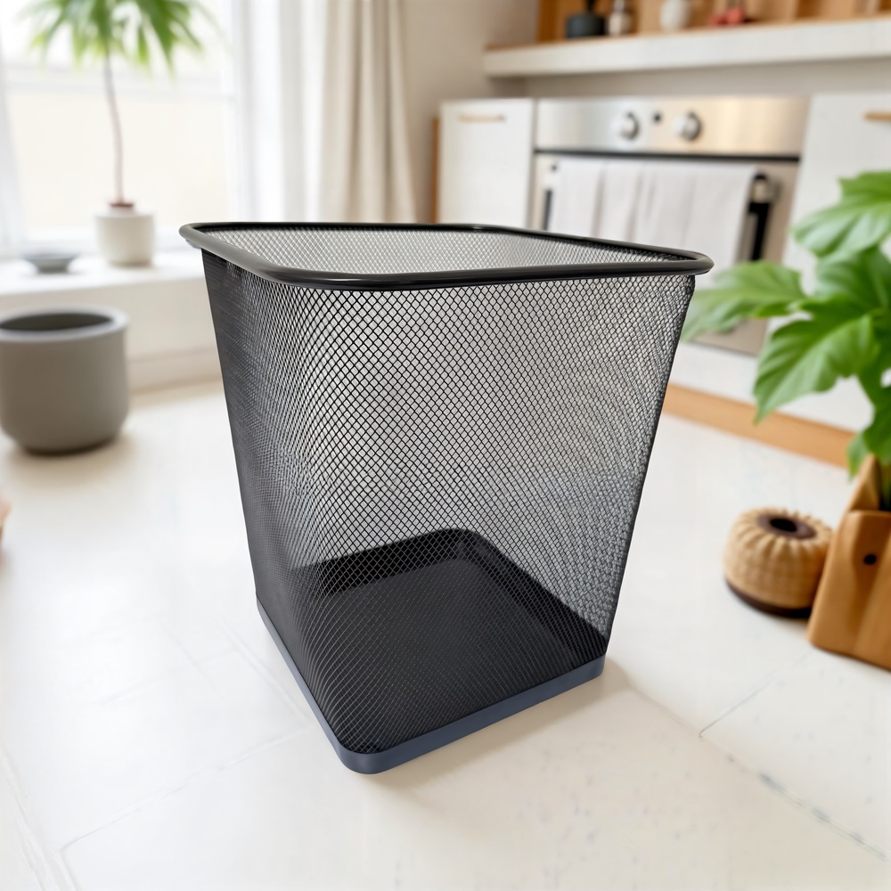 This square mesh trash can offers a compact, breathable, and durable waste solution for offices, study rooms, and modern home spaces.