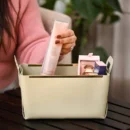 Designed for spaces that create, the Studio Basket is a versatile storage essential crafted from premium vegan leather. Its structured yet flexible form makes it perfect for organising everyday essentials—whether on your work desk, shelf, bedside or studio corner. Use it as a stationery holder, plant basket, or catch-all organiser for notebooks, chargers, art supplies or home accessories. The basket folds flat when not in use, making it practical for compact living and easy storage.