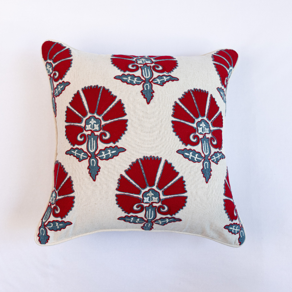Suzani Style Aari Embroidered Red Wedlock Cushion Cover