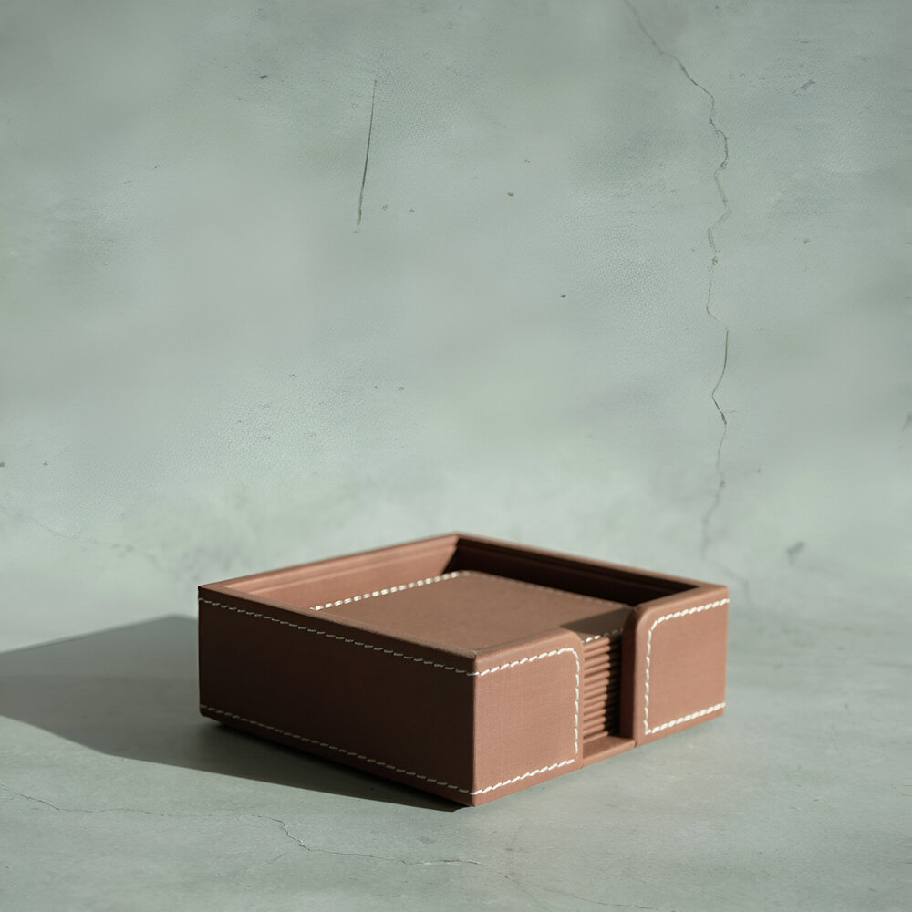 A refined set of 6 PU leather coasters offering durable surface protection with a rich, classic finish.