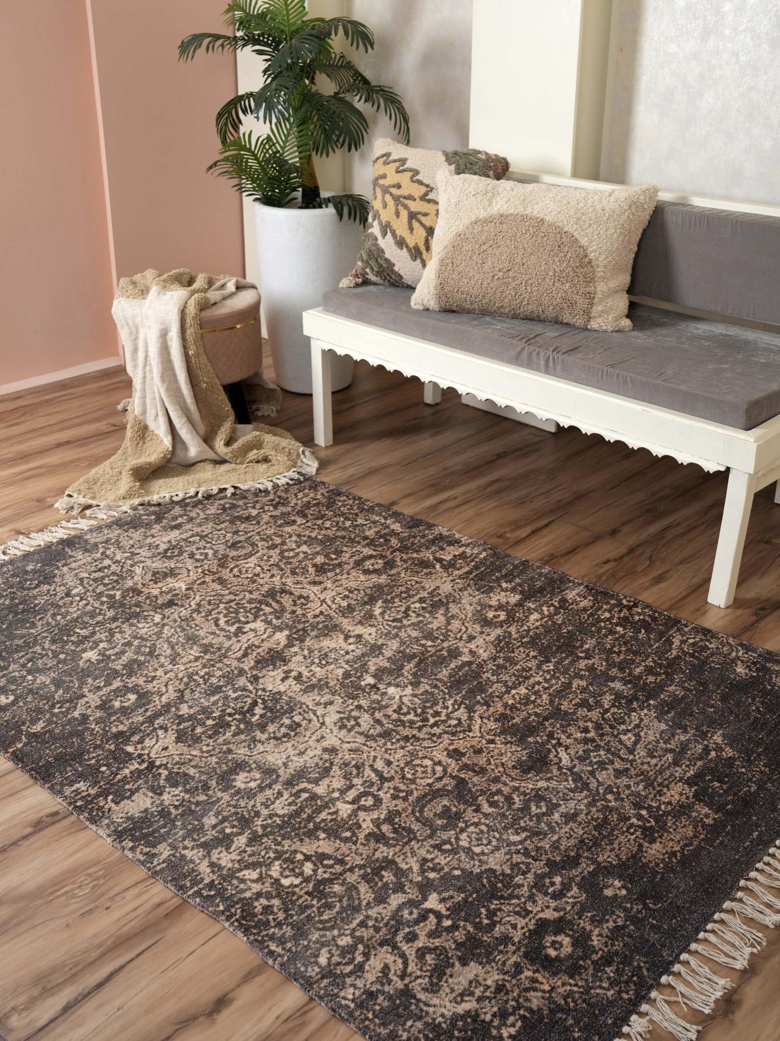 Envelop yourself in luxury as you sink your toes into the plush softness of our vintage inspired print rug, designed to elevate the ambiance of your home.Perfect for adding character to your living room or bedroom. Or perhaps you’ll fall in love with our Vintage Vista rug, a masterpiece of design that effortlessly merges vintage aesthetics with modern sensibilities. Material: 70% Chenille 30% Cotton Please note: All of our products are meticulously handcrafted by artisans. We pay close attention to the product’s quality, appearance, and feel. However, because of the participation of humans in the manufacturing process, a little amount of variation in the product’s size, color, look, and quality is to be expected; however, this is what makes it unique. “The color of the product may vary depending on the display of your screen. Please note that there will be slight variations in appearance and designs as per the size ordered.”