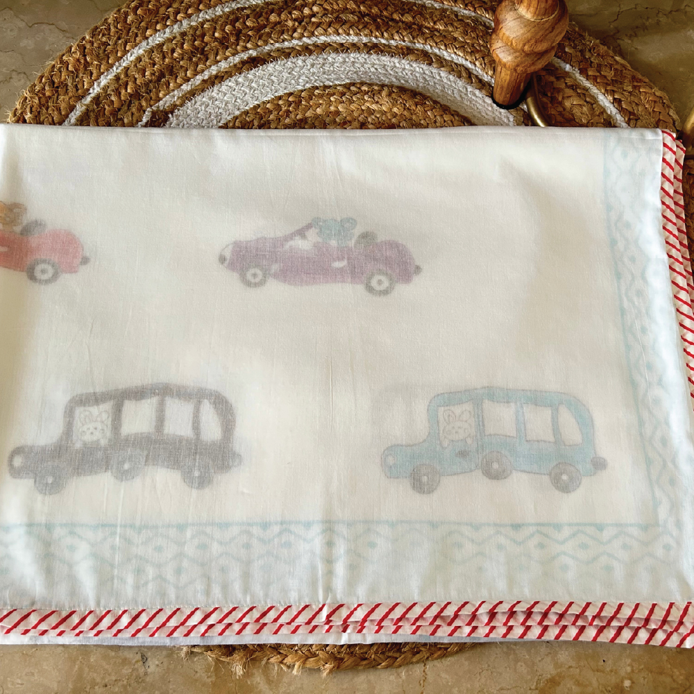 Safe and Non-Toxic: Crafted from 100% cotton with non-toxic dyes, making it perfect for children under 7 years old.Handcrafted Excellence: Hand-blocked in India using traditional methods for unique, artisanal quality. All-Season Comfort: 210 GSM weight makes it suitable for use in all seasons, providing warmth and breathability. Charming Design: Features a whimsical unicorn design in a pink and white color scheme that delights kids. Generous Size: Measures 40×60 inches, ideal for cribs, beds, and cozying up during playtime. Naturally Dyed: Made with natural dyes, ensuring a gentle touch on your child’s sensitive skin. Homegrown Craftsmanship: Proudly homegrown and designed to deliver premium quality and durability.