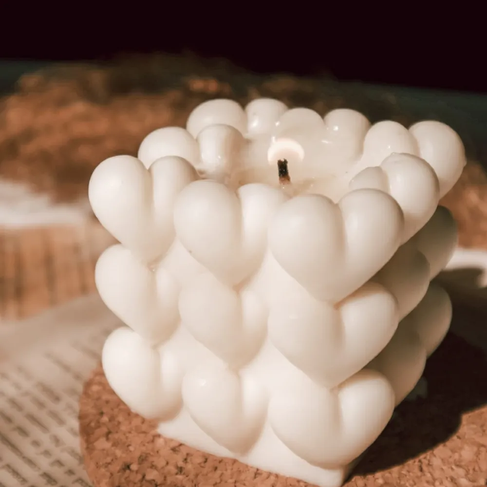 Give your space a revamp with our heart cube candle that adds a fun minimalist touch to any room. This candle is unscented and made with 100% soy wax.
