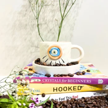 Sunstone Gaze – Evil Eye Ceramic Mug & Plate Set