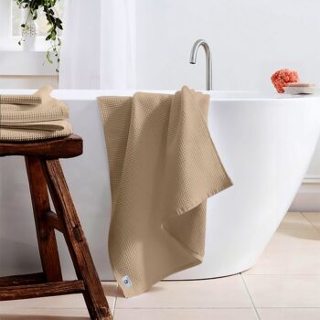 • Beige Cotton Quick Drying Waffle Bath Towels